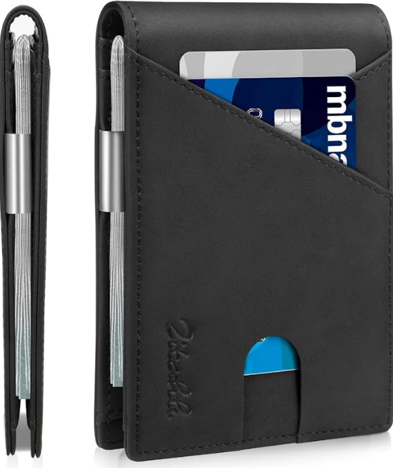 love how compact and sleek this wallet is. It easily holds all my essential cards without bulking up my pocket. The leather feels soft yet durable, and the money clip keeps bills secure. The RFID blocking gives me peace of mind when I travel. Plus, the gift box presentation makes it perfect for gifting. -