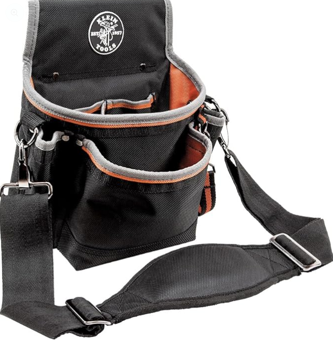 I’ve been using the Klein 5243 pouch for several months on busy job sites, and it’s held up beautifully. The ballistic weave is rugged, and the reinforced bottom shows no signs of wear. I love the tape thong — makes grabbing electrical tape quick and easy. The padded shoulder strap is a game changer when I don’t want to carry it on my belt.
