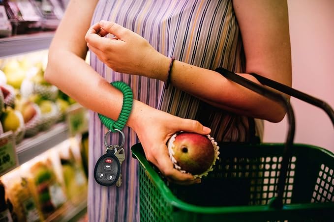 - Premium materials: superior quality flexible Coil spring back and never loses its shape. Fits comfortably over the wrist for exercise, water sports, The gym, ID badges and more. Built to last and handle any accessory you need to carry with you on a daily basis. Strong and lightweight design is waterproof and allows for the keychain to easily attach to items.