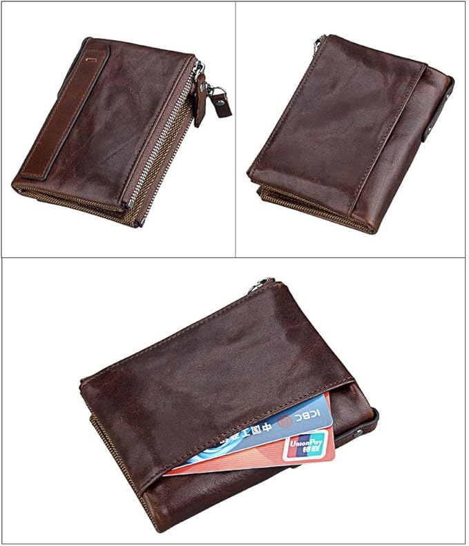 shuainiu Men's Folding Double Zip Wallet RFID Blocks Retro Short Coin Purse