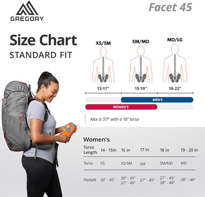 Gregory Facet 45L Women's Ultralight Backpacking Pack with Freefloat Suspension, Aluminum Frame, Ventilated Backpanel, Medium, Sunset Grey