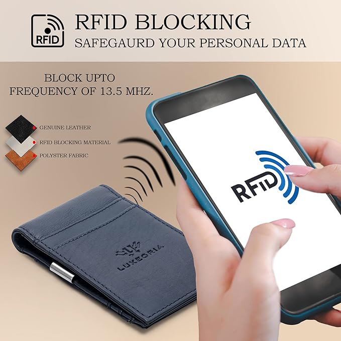 LUXEORIA Full Grain Genuine Leather Moneyclip Wallet for Men, Handcrafted Travel Wallet, Slim Mens Wallet, RFID Wallet for Men - Card Holder, 10 Card Slots -Navy