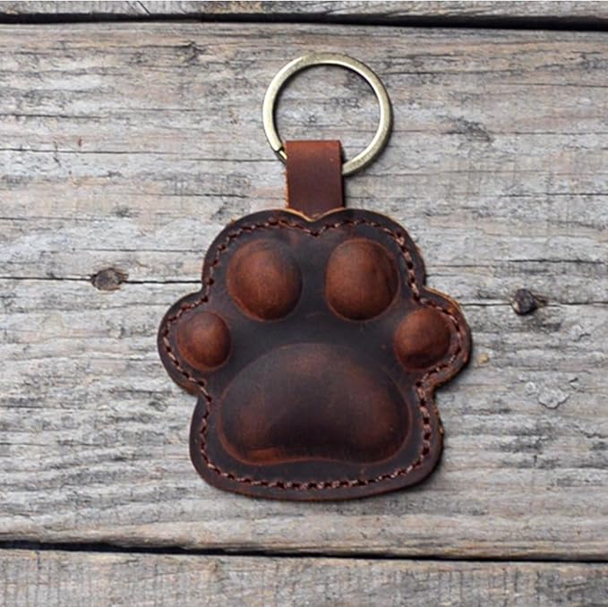 JJNUSA Dog Paw Leather KeyChain Gift Women Men Key Rings Puppy Doggie Lover Accessories