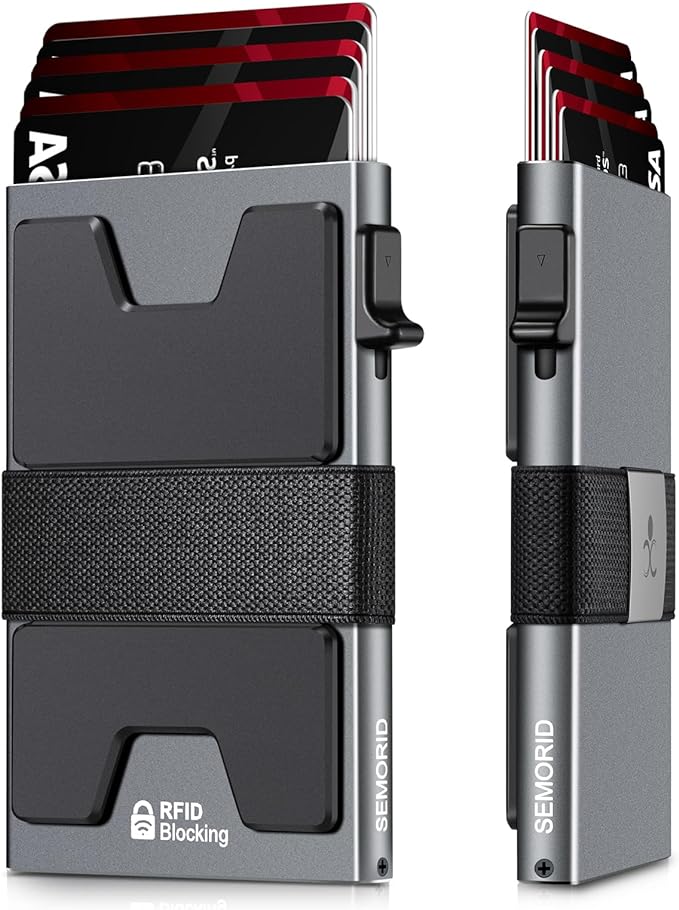 - π RFID & NFC BLOCKING: Advanced aluminium technology protect your cards from unauthorized and contactless scanning. Stop thieves from cloning your bank cards and prevent data theft.
