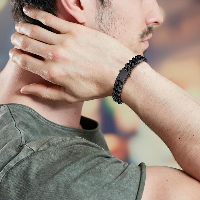 Stainless Steel Bracelets for Men,Cuban Link Mens Bracelet Silver/Black/Gold Plated Classic Chain Wrist Bracelets Jewelry Gifts for Dad Husband 5/7/9/12MM Width,7.5"/8.3"/9" Length with Gift Box