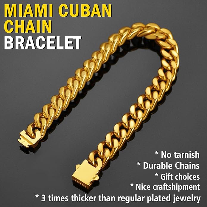 - Miami Cuban Chain: Solid fit with sturdy clasp. Sturdy and each link is very secure. Makes a beautiful gift.