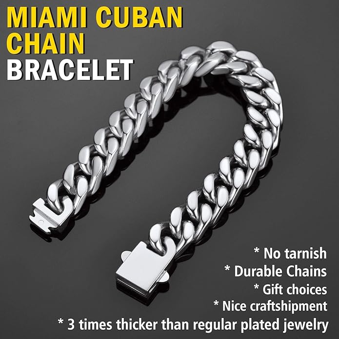 - Miami Cuban Chain: Solid fit with sturdy clasp. Sturdy and each link is very secure. Makes a beautiful gift.