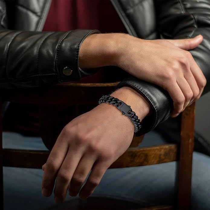 Stainless Steel Bracelets for Men,Cuban Link Mens Bracelet Silver/Black/Gold Plated Classic Chain Wrist Bracelets Jewelry Gifts for Dad Husband 5/7/9/12MM Width,7.5"/8.3"/9" Length with Gift Box