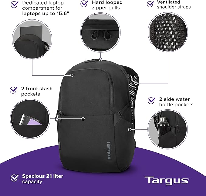 Targus Laptop Backpack Zero Waste EcoSmart Work Travel Backpack for Men Women Eco Friendly with Laptop Protection Made From 20 Recycled Water Bottles, Black (TBB641GL)