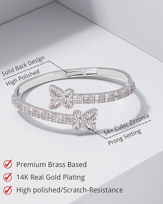 - Fine crafted and Elegant design: classic and simple oval bracelet with butterfly decoration, delicate and elegant. The open design makes it easy to wear and not easy to fall off. Looks great worn alone or stacked, perfect for everyday, dating and various occasions.