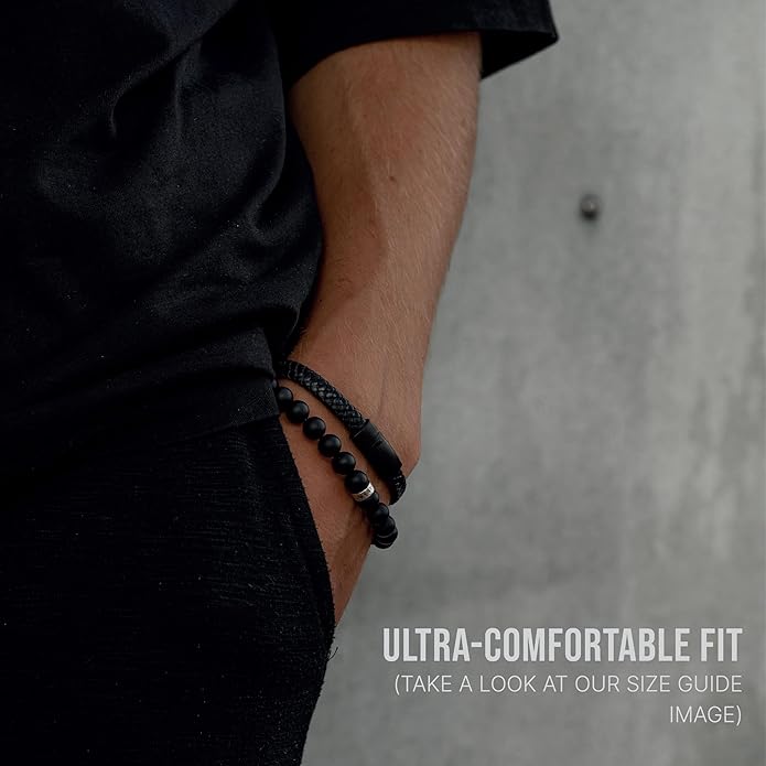 - ☑️ FIND YOUR PERFECT FIT - Choose from three sizes of our 8mm onyx bracelet: small, medium, and large. The small size fits wrists between 6-6¾ inches, the medium size fits wrists between 6¾-7½ inches, and the large size fits wrists between 7½-8½ inches. If you find yourself on the size boundary, opt for the smaller size for a snugger fit that exudes confidence.