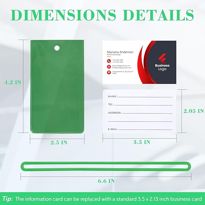 - Perfect Size:Designed with the perfect dimensions of 4.2 x 2.5 inches, our luggage tags feature a 3.5 x 2.26-inch information card slot, making it easy to swap in your business card or personal details for added convenience