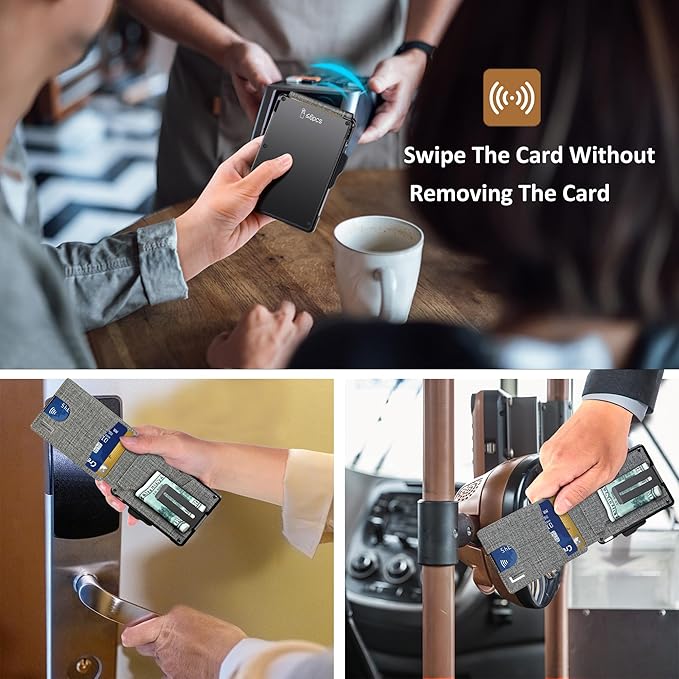 - 【Newly Design】: High quality fabric that is made for the cover of the wallet. The aluminum wallet chamber make of premium metal with a smooth eject pop up feature, using the latest ergonomic design, easy slide the side button of the metal wallet and get the neat pop-up cards. Inner magnet in the cover allowing you to attach the cover and the chamber magnetically.