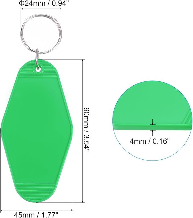 - Key Ring Diameter: 24mm / 0.94 inch; Overall Size: 90x45x4mm / 3.54x1.77x0.16 inch(LxWxThk); Package List: ! x Blank Motel Keychain