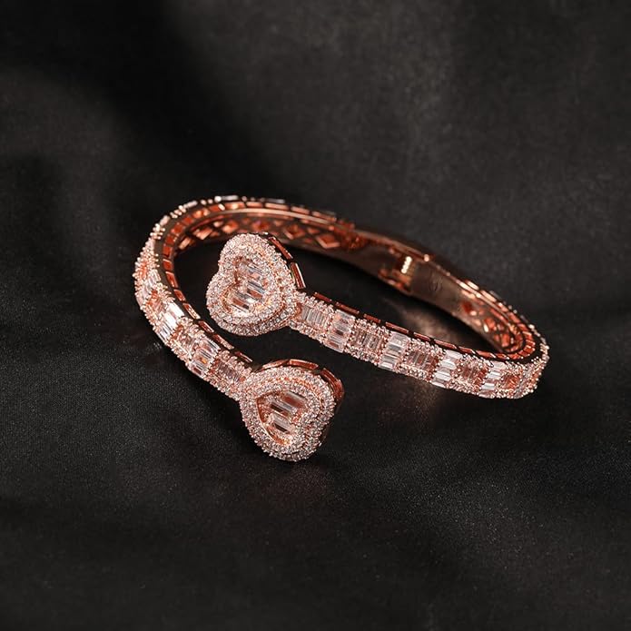 Lulu Mel Iced Out Baguette Diamond Bracelet Jewelry for Women, Hip Hop Mens 14k Gold Silver Plated Cubic Zirconia Bangle Bracelet, Men Heart Cuff Bracelet With Jewelry Box