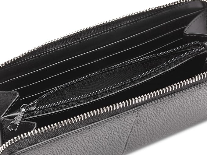 Bosca Womens Wallet - Slim Italian Leather Zip 8" Wallet For Women, Handmade in Italy - 12 Card Pockets, 2 Bill/Phone Pockets, Zipper Coin Pocket, Black