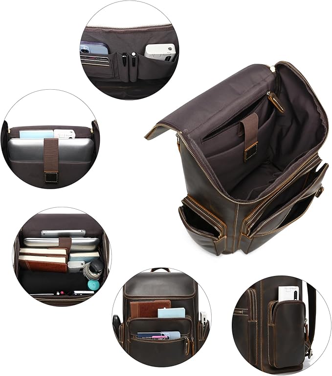 - 【Premium Quality】Made of Italian full grain cowhide leather (leather thickness 2.0mm). Crazy Horse leather can create a vintage retro look and provide long lasting service life for decades.This kind of leather bag can get better and more beautiful with time and usage.