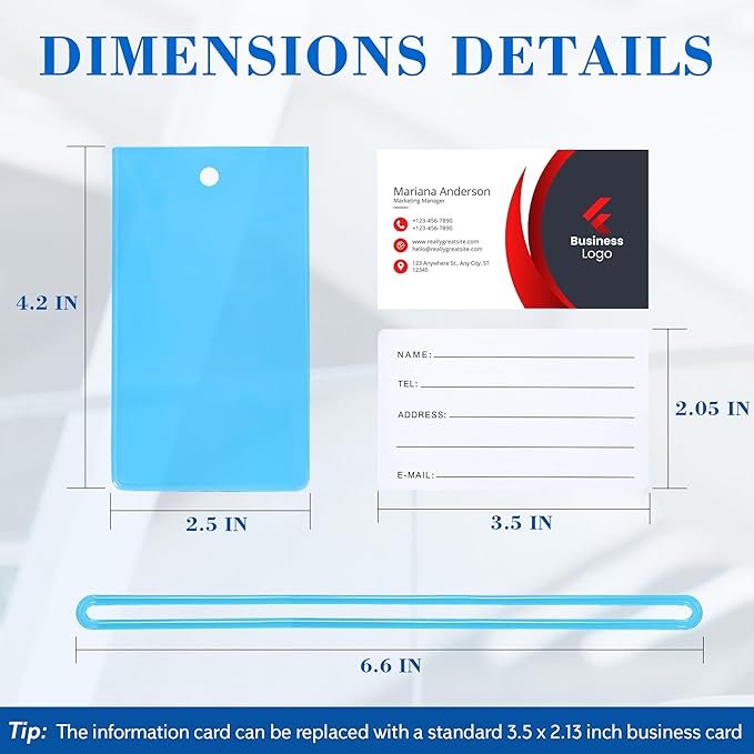 - Perfect Size:Designed with the perfect dimensions of 4.2 x 2.5 inches, our luggage tags feature a 3.5 x 2.26-inch information card slot, making it easy to swap in your business card or personal details for added convenience