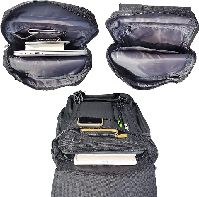 - MULTI COMPARTMENT Laptop Backpacks. Rectangle shape with multiple pockets for storage and organization. Main compartment contains laptop compartment, iPad compartment, pens compartment, secure zipped compartment.One flap compartment, two side compartments with safe belt . It has every compartment that will meet your needs.