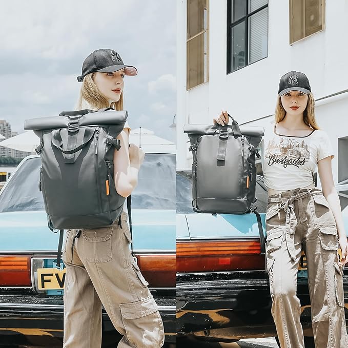 Roll Top Travel Backpack for Men and Women 15.6 Inch 20-25L Expandable Water-Resistant Commuter Casual Daypack Laptop Backpack for Work Business College