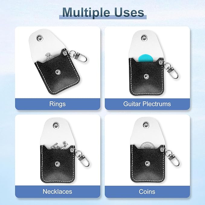 - PORTABLE - it can be hung on a keychain or wallet. With this mini ring keeper pouch, you don't have to dig through your backpack for earrings, wedding rings, and necklaces, It can also be used to organize coins and guitar picks.