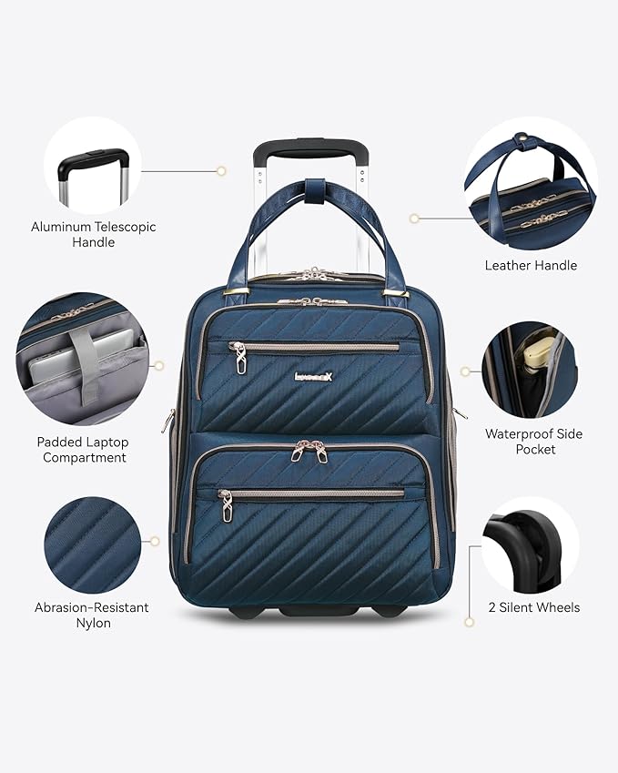 - Sturdy Yet Ergonomic: Top with a resistant all-aluminum handle, this underseat roller bag provides effortless pulling and ergonomic comfort for frequent travelers. Back with a smart sleeve to attach atop a carry-on while boarding.