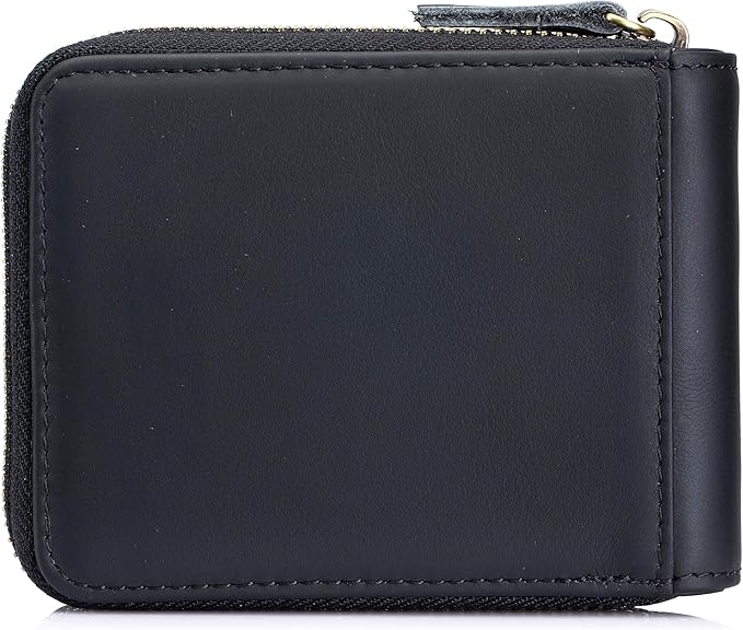 LUKZIJAES Genuine Leather Men's Wallets RFID Blocking Large Capacity Credit Card Vintage Wallet for Men with Coin Pocket Zipper ID Window (#9-Black)