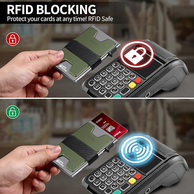 - π RFID & NFC BLOCKING: This smart wallet use advanced aluminium technology to protect your cards from unauthorized and contactless scanning. Stop thieves from cloning your bank cards and prevent data theft.