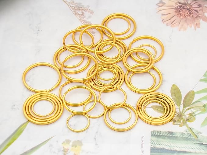 - [Metal Key Rings Assorted in 4 Sizes] This Round key rings assorted is made of premium Iron in 4 sizes: 3/4 inch (20mm) X 10PCS + 1 inch (25mm) X 10PCS + 1.2 inch (30mm) X 10PCS + 1.37 inch (35mm) X 10PCS in outter diameter. Round split style design,Color: Golden, Total 40pcs. It can meet most of your needs in daily life. Convenient and save your money !