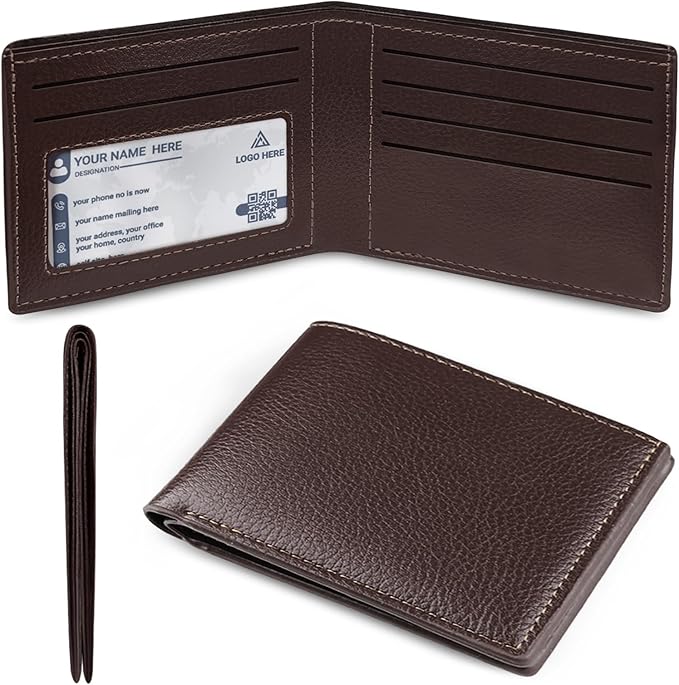 luseyfj Mens Slim Bifold Wallet with ID Clear Window & 6 Credit Card Slots, Minimalist Handmade Bifold Wallets for Men, Thin Card Credit Holder Wallet for Men - Slim & Stylish (Coffee)