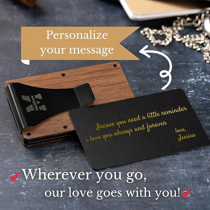 Custom Wallets For Men - Slim Personalized Wallet Gifts for Him, Mens Customized Wallet, Minimalist Engraved Wallet Clip Gifts for Dad, Fiance, Husband, Son, Father, Boyfriend - Anniversary, Birthday