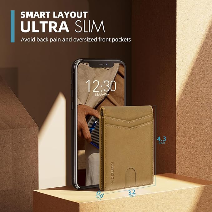 RUNBOX Wallet for Men Slim Rfid Leather 2 ID Window With Gift Box