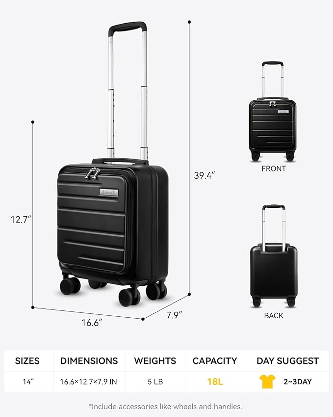 - Airline Approved: This hard shell suitcases meets the personal item requirements of most airlines, ensuring you can easily store it under the seat or in the overhead bin. You can breeze through boarding, knowing your necessities are conveniently nearby.