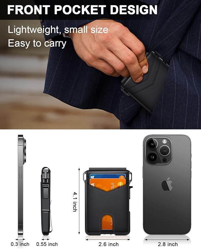 - RFID BLOCKING: This rfid wallet for men embeds a chip in the aluminum card case to block unknown scanning devices from scanning your credit cards, debit cards, and driver's licenses, maximizing the protection of your personal property.