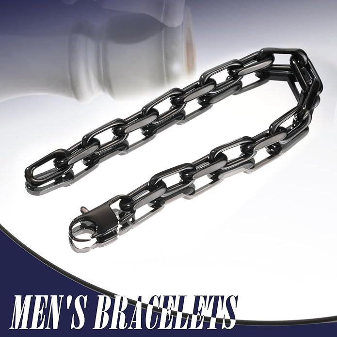 VNOX Link Chain Bracelets for Men - Cool Mens Bracelets Diamond-Cut Paperclip Solid Chain Bracelet Chunky Stainless Steel Jewelry Trendy Gifts