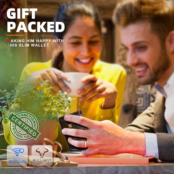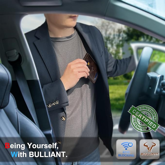 BULLIANT Men Wallet, Slim Leather Wallet Front Pocket Card Holder Gift For Men 11 Slots RFID Blocking