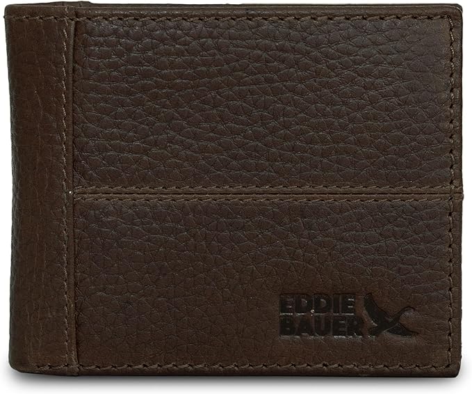 Eddie Bauer Men's Rugged Leather Bifold Wallet | Money Clip | RFID Protection | ID Window | Genuine Leather | EDC