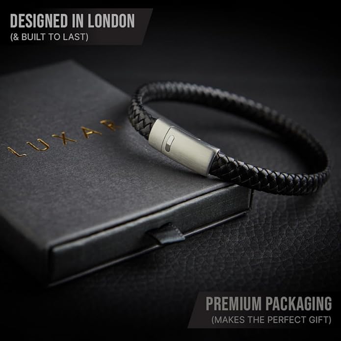 - ☑️ THE LUXAR GENUINE INTERWOVEN LEATHER MEN'S BRACELET - Experience the epitome of style with Luxar's masterpiece. Crafted from genuine leather intricately interwoven with a sleek brushed Silver clasp. Brace yourself for elegance.