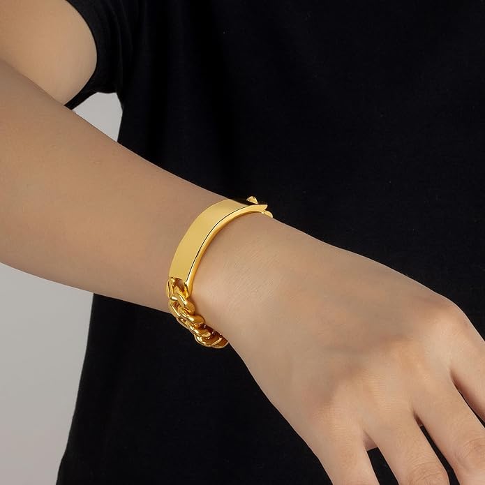 - Classic Design-Authentic Italian Handmade Made 925 Sterling silver 12mm Cuban chain Bracelet, adding a touch of charm to your daily outfit. Solid Miami Cuban Link Chain With Rectangular Card Perfect combination Strips create a flexible movement and shiny luster, Modern and Beautiful Appearance. Moderate Punk Fashion men's Silhouette, Whether it is casual jeans, T-shirt or clothing, it is the perfect bracelet for everyday wear.Wear alone or as a stackable Jewelry for fashion statement.