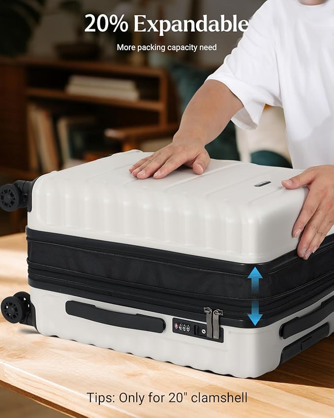 - More Packing Space Options: this 22x14x9 airline-approved 20" clamshell carry on luggagewith 20% expandable design, allowing extra space for souvenirs or extended stays; 28" luggage non-expandable