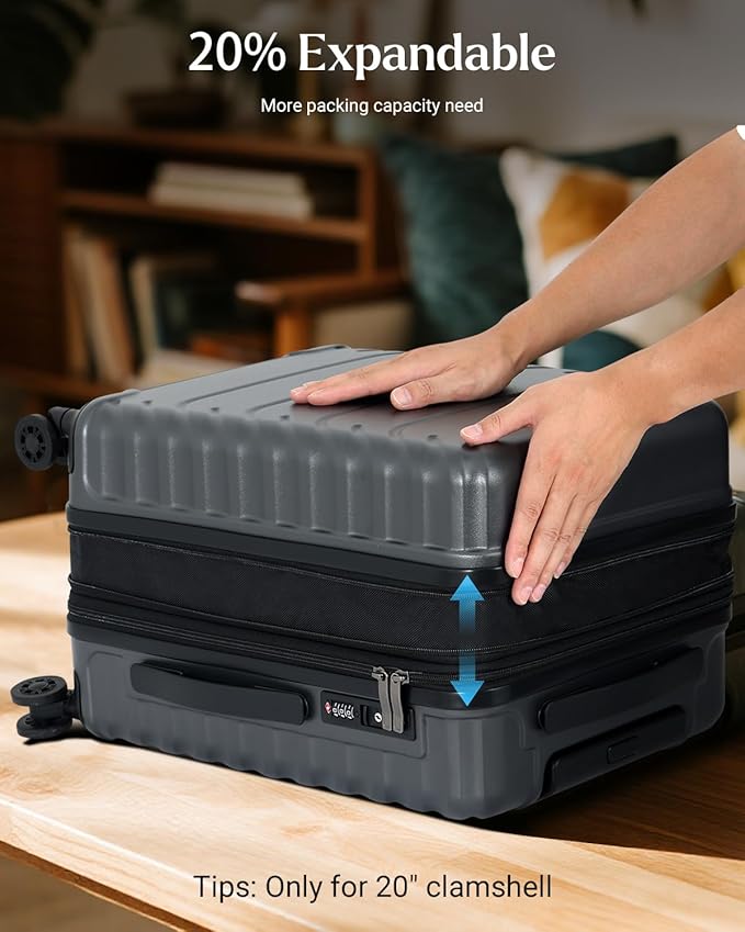 - More Packing Space Options: this 22x14x9 airline-approved 20" clamshell carry on luggagewith 20% expandable design, allowing extra space for souvenirs or extended stays; 28" luggage non-expandable