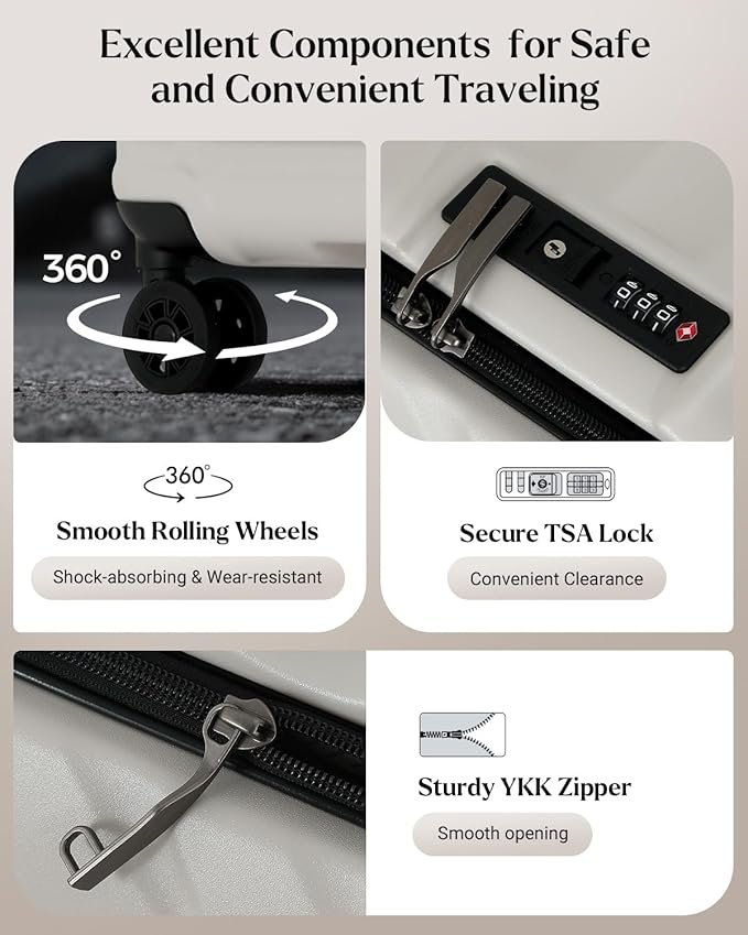 - Travel with Confidence: TSA-approved lock for security checks, YKK zippers and luggage strap for extra protection; smooth-rolling 360° spinner double wheels ensure effortless mobility; adjustable telescopic handle offers comfort and control
