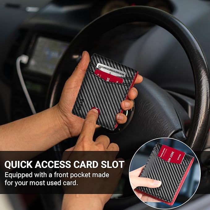 - SLIM BIFOLD WALLET: This minimalist wallet measures 4.5x3.3x0.6 inches, this bifold slim wallet for men can hold up to 15 cards. Its slim profile slips effortlessly into your pocket, making it an ideal choice for everyday carry.
