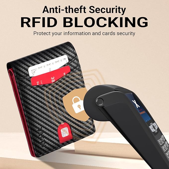 - RFID BLOCKING: Our men wallet is equipped with advanced RFID blocking technology, preventing unauthorized scanning of your credit cards, IDs, and other personal information. Enjoy peace of mind knowing that your data is secure wherever you go.