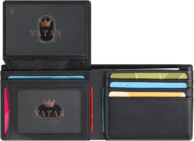 VATAN Wallet for Men, Mens Minimalist Wallet Credit Card Holder, Slim Leather Rfid 2 ID Window Large Capacity With Gift Box (Crazy Horse Black)