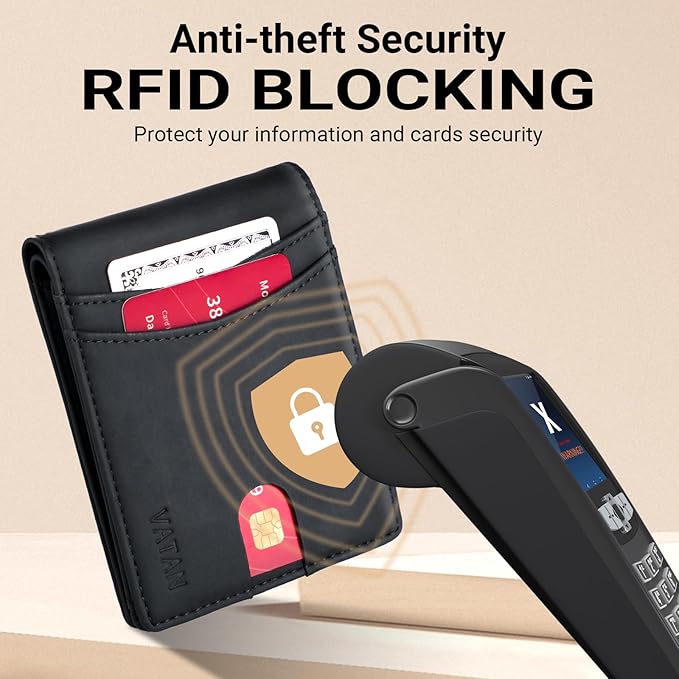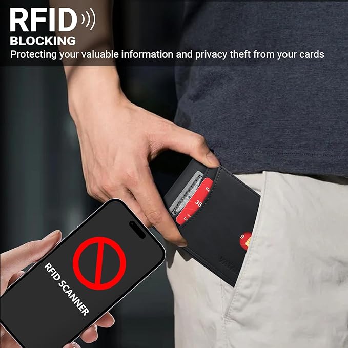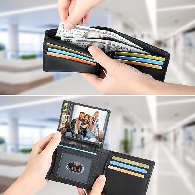 - RFID BLOCKING: Our men wallet is equipped with advanced RFID blocking technology, preventing unauthorized scanning of your credit cards, IDs, and other personal information. Enjoy peace of mind knowing that your data is secure wherever you go.