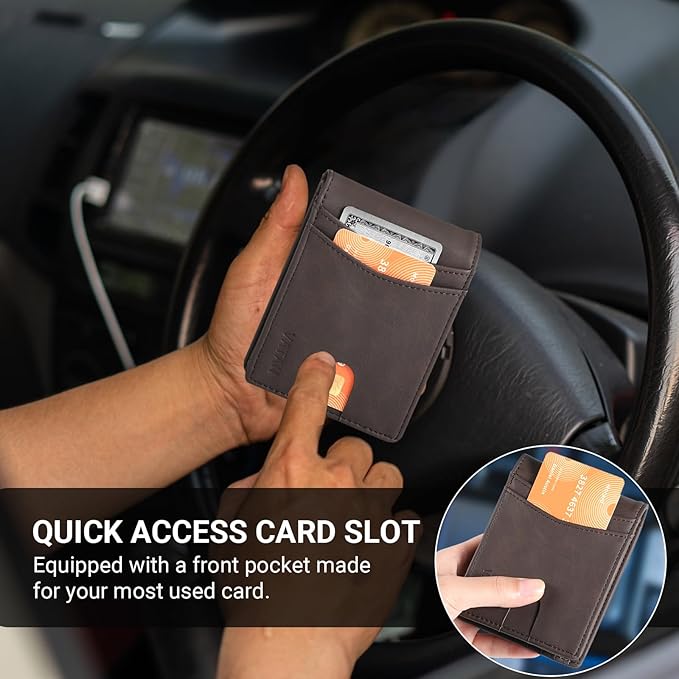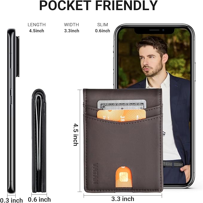 - SLIM BIFOLD WALLET: This minimalist wallet measures 4.5x3.3x0.6 inches, this bifold slim wallet for men can hold up to 15 cards. Its slim profile slips effortlessly into your pocket, making it an ideal choice for everyday carry.