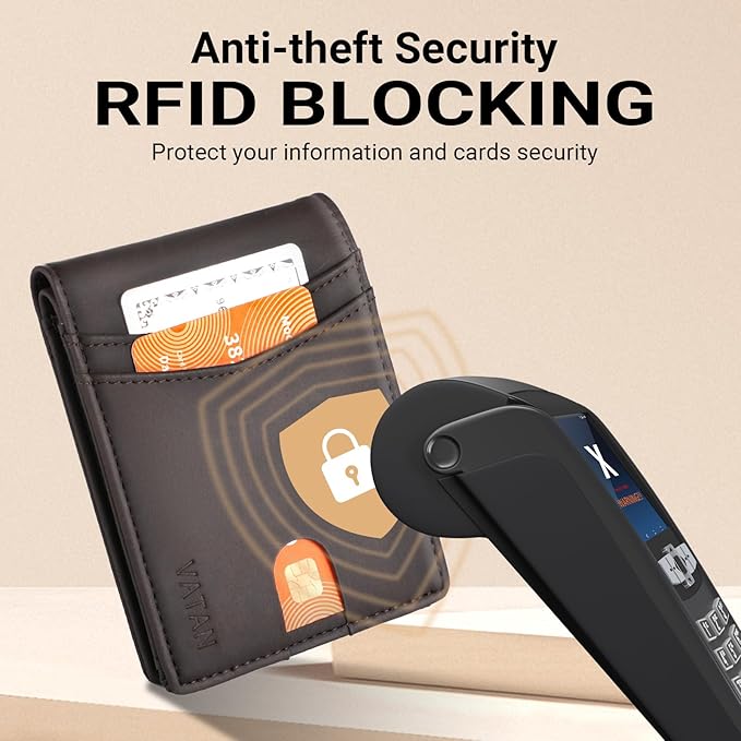 - RFID BLOCKING: Our men wallet is equipped with advanced RFID blocking technology, preventing unauthorized scanning of your credit cards, IDs, and other personal information. Enjoy peace of mind knowing that your data is secure wherever you go.