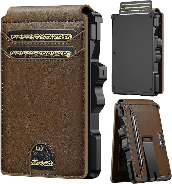 - Slim Yet High Capacity: Carry 12+ cards and cash without bulk; The aluminum chamber smart wallet stores 6-7 cards; The leather flap fits 4-6 more plus an ID window; Metal money clip holds 15+ bills, Stays slim in your pocket
