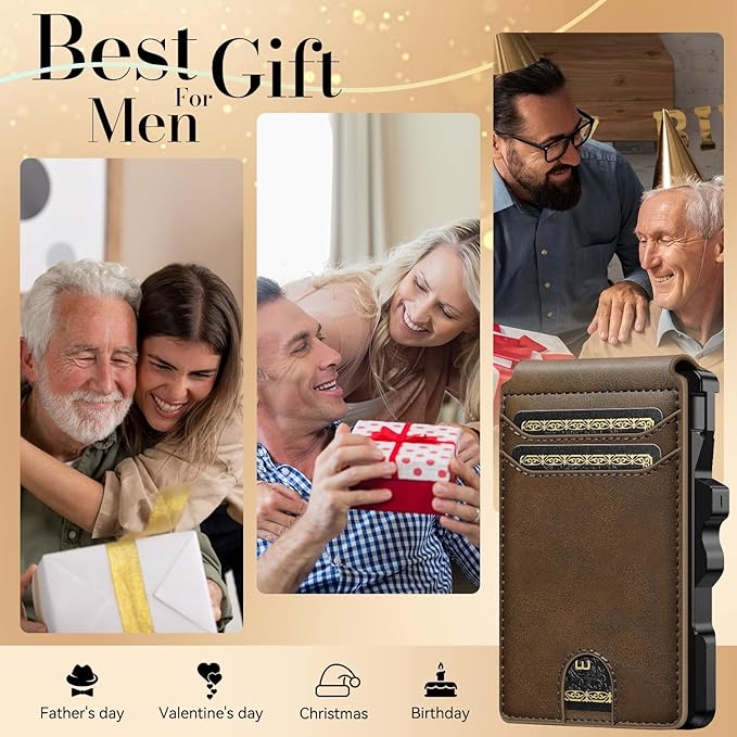 furid Smart Wallet For Men Slim: Rfid Minimalist Pop Up Wallets with Money Clip Metal Credit Card Holder - Gifts for Husband Father at Birthday Anniversary